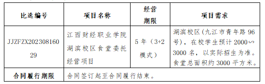 九江振发招标咨询有限公司有关于江西财经职业学院湖滨校区食堂委托经营项目(比选编号:JJZFZX20230816029)比选公告