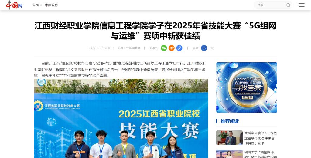 (中国网)江西财经职业学院信息工程学院学子在2025年省技能大赛“5G组网与运维”赛项中斩获佳绩