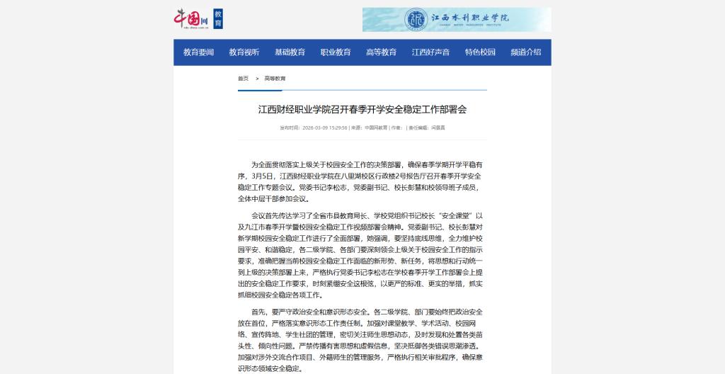 (中国网)江西财经职业学院召开春季开学安全稳定工作部署会
