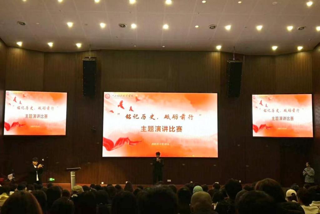 为学习贯彻习近平总书记在纪念中国人民抗日战争暨世界反法西斯战争胜利80周年大会上发表的重要讲话精神,校团委于10月22日在八里湖校区行政楼二号报告厅举办了“铭记历史,砥砺前行”主题演讲比赛。经过二级学院初赛选拔,共有24支队伍脱颖而出,晋级决赛。决赛现场,参赛选手们紧扣主题,结合丰富的史实史料和深切的个人感悟,以饱满的精神状态与专业的表达素养,成为舞台上最亮眼的“红色传承人”。他们有的语调铿锵有力,在...
