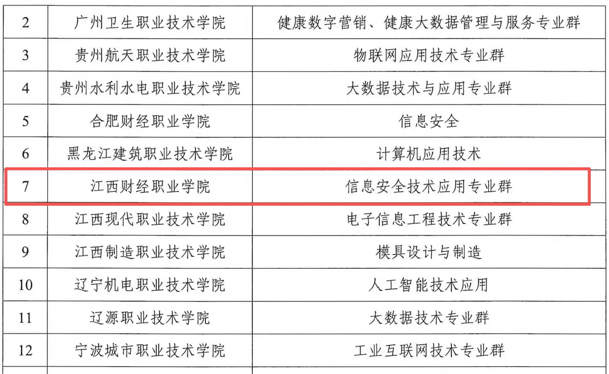 近日,工业和信息化部人才交流中心正式公布适配产业需求的人才培养方案创新研究揭榜单位名单,江西财经职业学院信息安全技术应用专业群凭借扎实的专业基础、创新的培养模式与深度的产教融合成果成功入围。