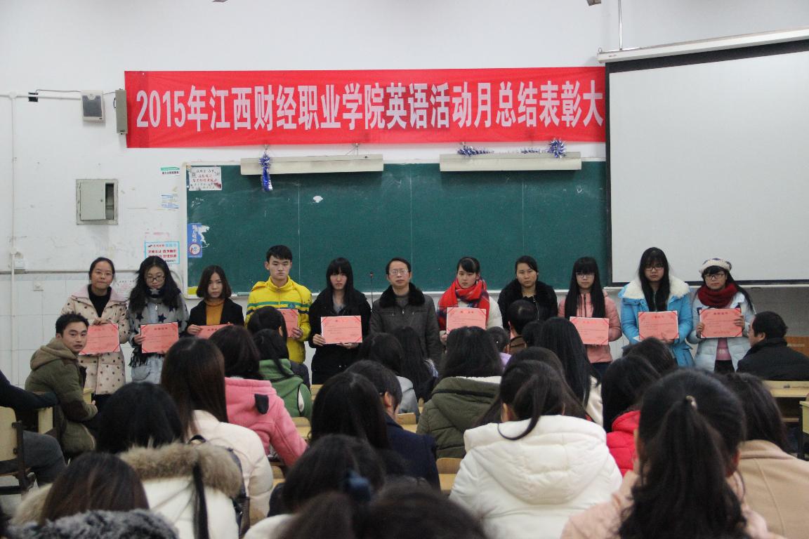 总结表彰大会的召开标志着2015年度英语活动月系列活动圆满结束。本年度英语活动月系列活动是在历年举行的常规活动项目的基础上,增加了新的项目,丰富了活动内容,使更多的多学生能够参与进来。具体包括了“新生英语综合能力竞赛”活动、“英语演讲比赛”活动、“每周英语角”活动、“外教文化讲座”活动等。英语活动月系列活动极大激发了我校广大学生学习外语的积极性,形成良好的外语学习氛围,为创建学习型校园营造了良好的环境,也为今后外语类比赛培养及选拔了人才储备资源。