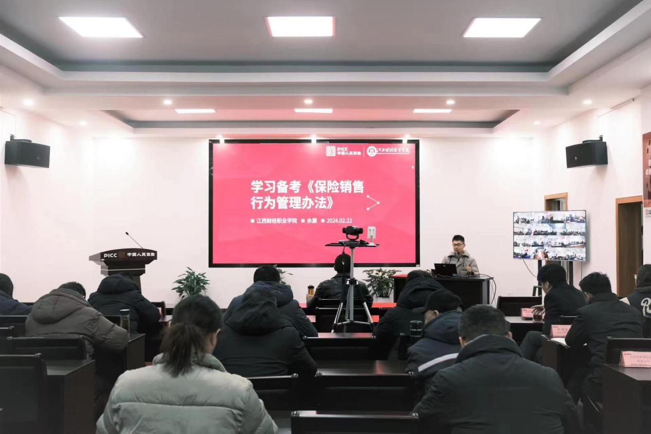 2月22日,财税金融学院余震赴人保财险九江市分公司开展《保险销售行为管理办法》培训工作。参加本次培训的有市公司班子成员、中层管理干部、各县(区)支公司员工共756人。本次培训由人保财险九江市分公司党委委员、副总经理袁唯才主持。
