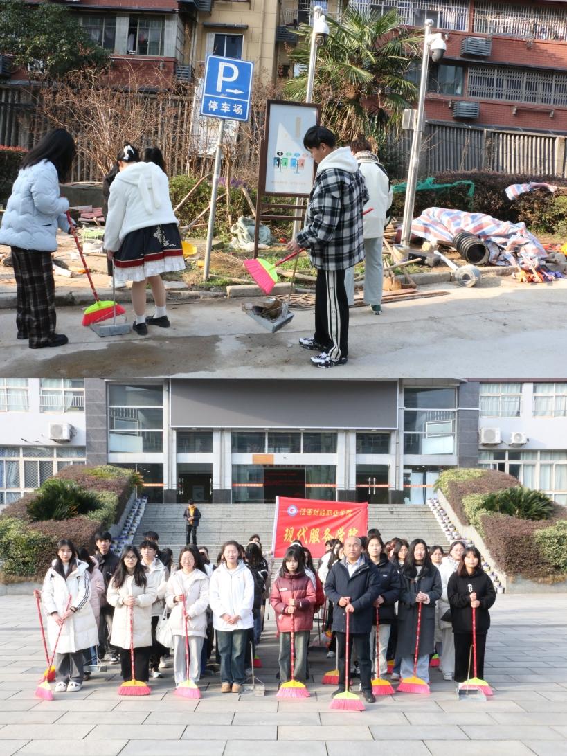 3月6日下午,现代服务学院开展了一次校园卫生环境大扫除活动,全体师生志愿者勠力同心,共同清理垃圾,共创美丽校园。