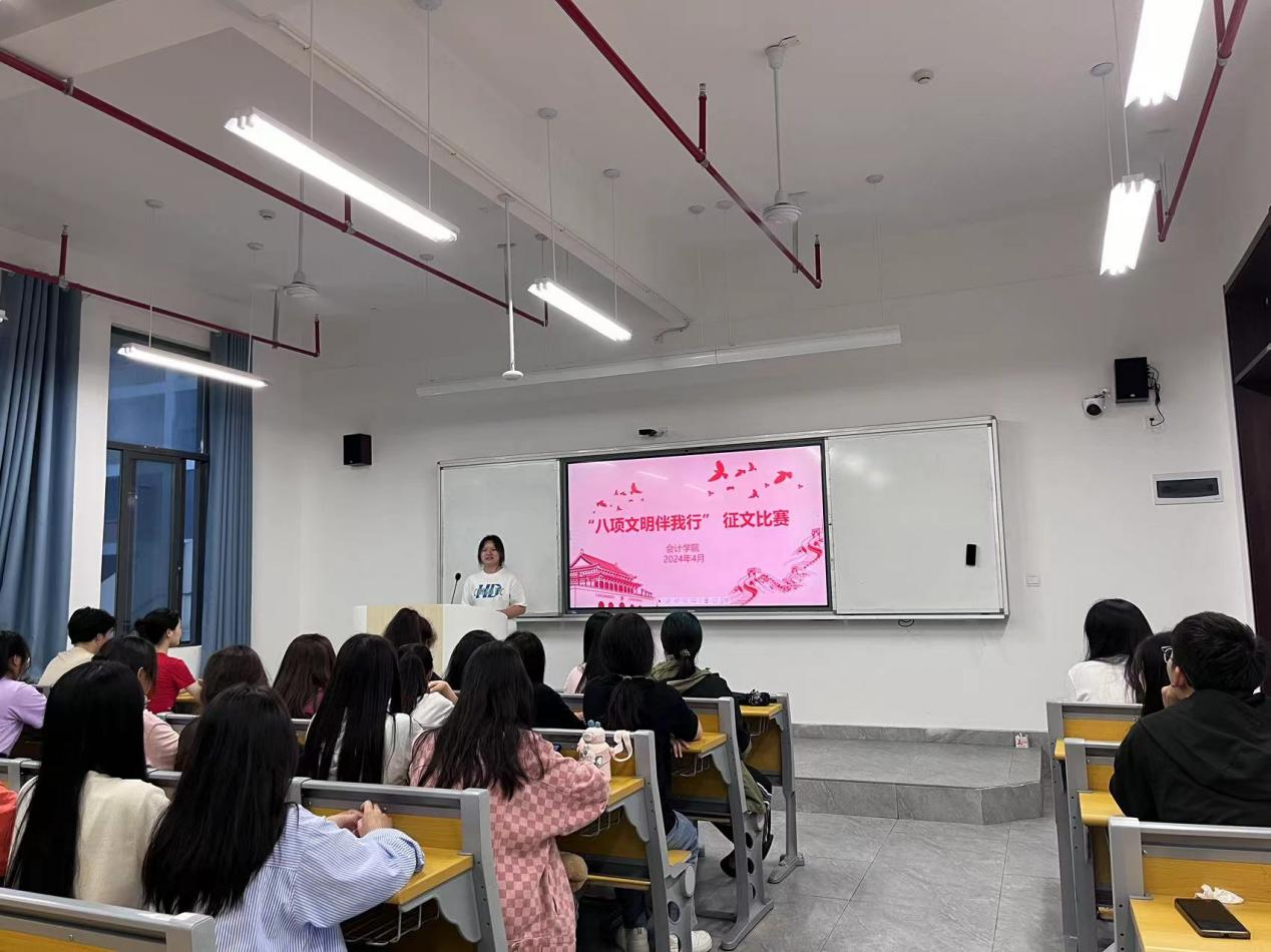 为进一步教育引导全体同学对文明礼仪的认识,培养学生良好的文明意识和社会责任感,4月22日至28日,会计学院开展了为期一周的以“八项文明伴我行”为主题的征文活动。