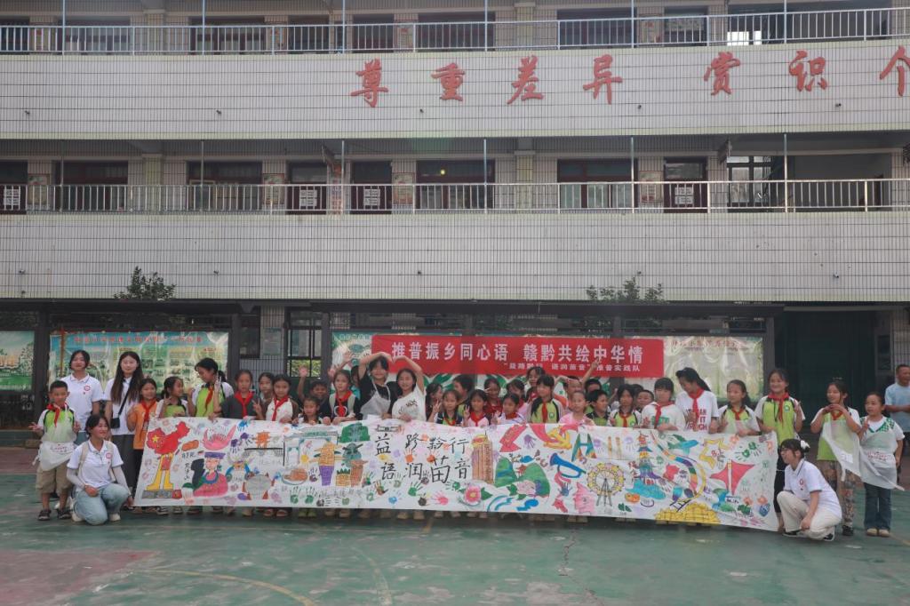在这个充满活力的夏日,江西财经职业学院“益路黔行 语润苗音”推普实践队与贵州省黔东南苗族侗族自治州舟溪镇舟溪小学携手,于7月12日下午共同举办了一场主题为“梦幻画卷,童心飞扬”的创意绘画活动。这场活动不仅跨越了地域的界限,更将赣黔两地的文化精髓巧妙融合,在孩子们的笔下绽放出璀璨的光彩。