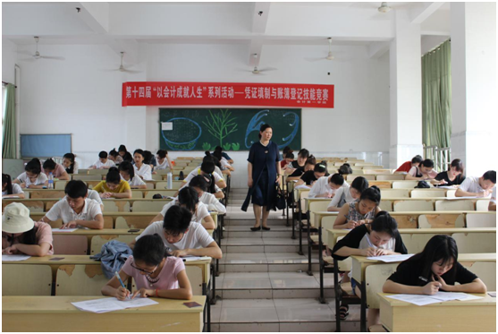 为进一步深化教育教学改革,不断增强同学们的会计实际操作能力,提高会计实务技能水平, 5月18日,会计第一学院在教学楼6楼开展了第十四届“以会计成就人生”系列活动——凭证填制与账簿登记技能竞赛,来自我院16、17级会计专业的200余名学生参加了此次竞赛活动。