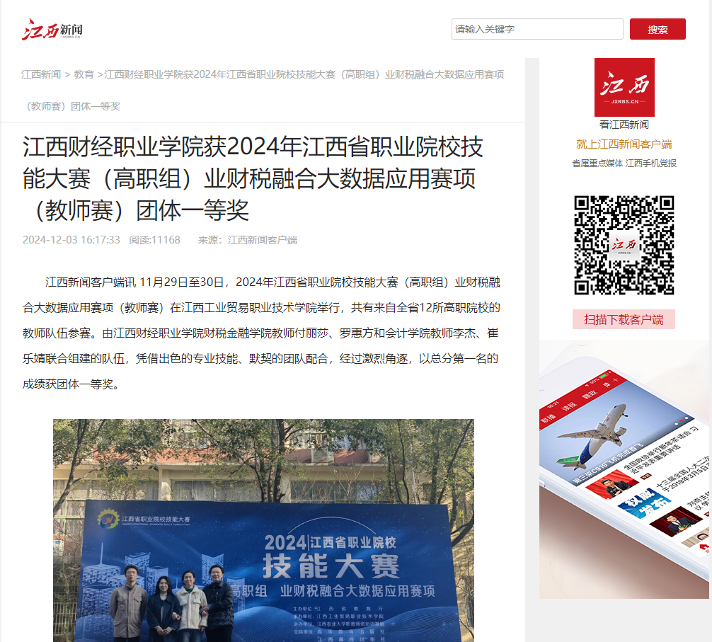 江西财经职业学院获2024年江西省职业院校技能大赛(高职组)业财税融合大数据应用赛项(教师赛)团体一等奖