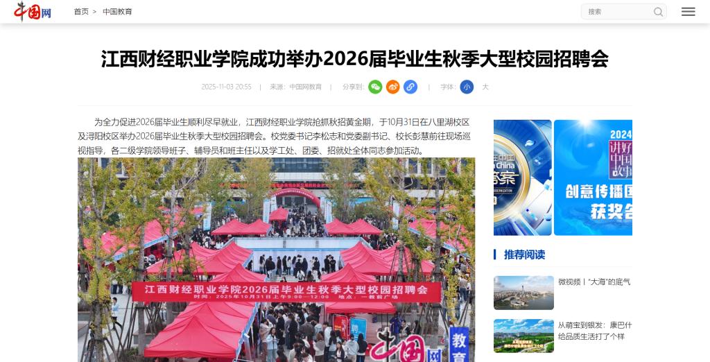 (中国网教育)江西财经职业学院成功举办2026届毕业生秋季大型校园招聘会