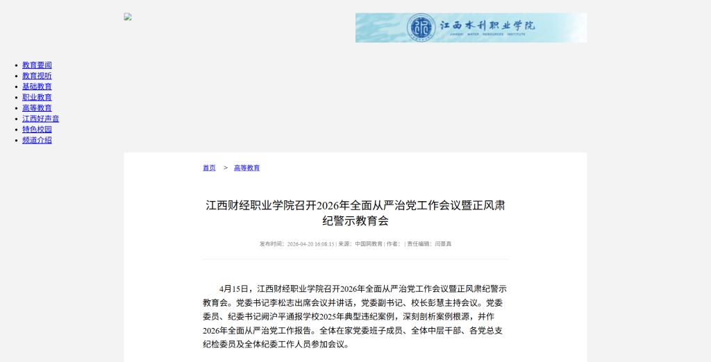(中国网)江西财经职业学院召开2026年全面从严治党工作会议暨正风肃纪警示教育会